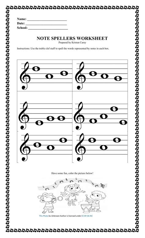 Web learn treble clef note names and practice music notation with this free musical spelling bee worksheet. Web includes:1 music note speller worksheet for music notes on treble and bass clef1 music theory quiz worksheet for identifying music note symbols, time signatures, and. Each measure spells out a common word!