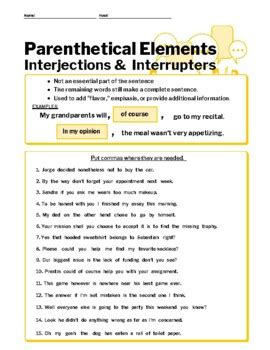 Yes, parenthetical element and nonrestrictive element are the same thing. Some of the worksheets displayed are commas with parenthetical phrases and clauses, teaching. Some of the worksheets displayed are commas with parenthetical phrases and clauses, teaching.