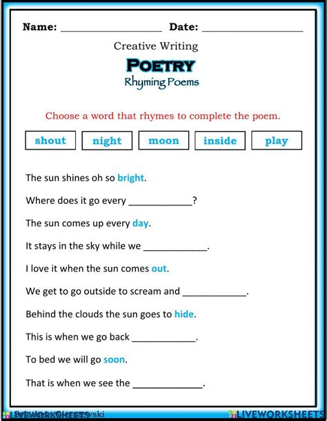 Poetry Worksheet Third Grade. Here is a collection of our printable worksheets for topic reading. With activities suited to all ages and levels, these poetry worksheets are a great way to get your.